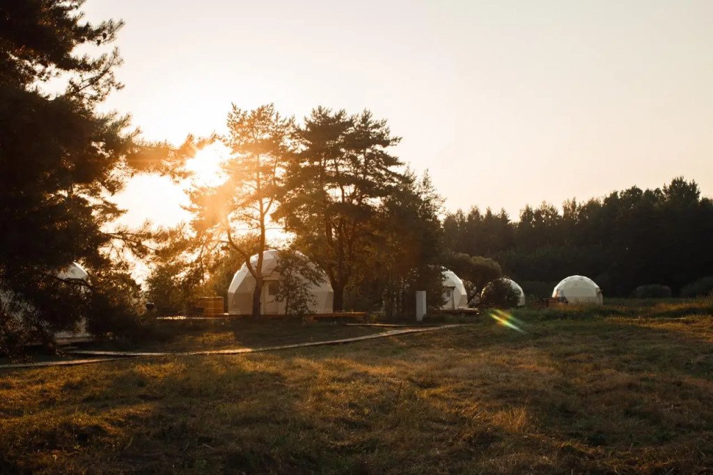Глэмпинг «Точка Немо» находится в Ярославской области, в 25 км от Ярославля на берегу Волги, среди сосен.