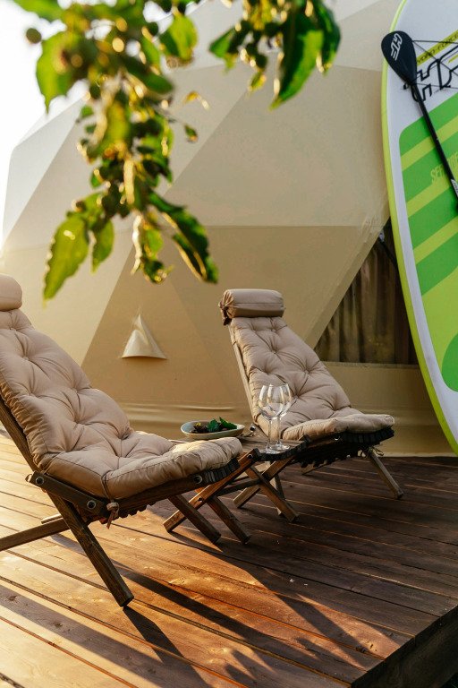На территории глэмпинга работает ресторан с панорамным видом на Волгу. Также имеются яхтинг, spa-баня, сауна на берегу реки, массажный кабинет.
