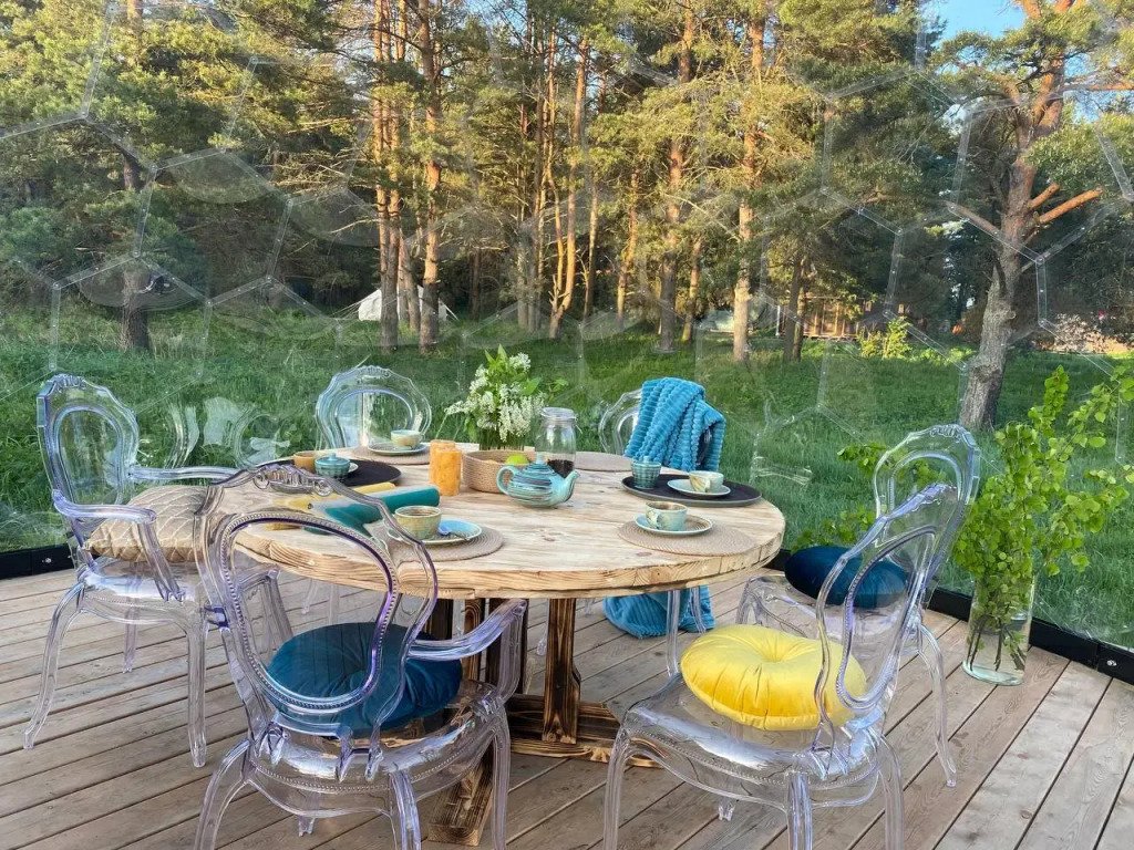 Все домики-полусферы расположены на первой линии, где одна их часть выходит на реку, а другая – на залив.