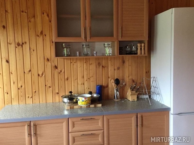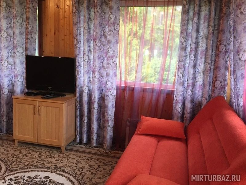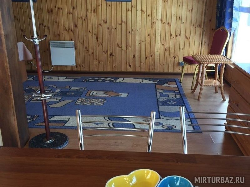 Одноэтажный коттедж , в котором размещены одна спальня ,совмещенная с гостиной и кухней,со всей необходимой бытовой техникой, ванная комната, оборудованная туалетом и душевой кабинкой, в которой всегда присутствует жидкое мыло. В доме есть диван который можно использовать как доп. место.