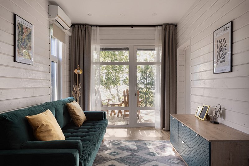 Дизайн номера выполнен в морском стиле, который позволит вам ощутить свежий ветер, услышать, как раскрываются паруса, и увидеть тонкую полоску горизонта на бескрайнем морском просторе. На время своего отпуска представьте себя капитаном яхты и отправляйтесь навстречу приключениям со своей командой. Собственная терраса с уличной мебелью и мангалом станет идеальным местом для утреннего кофе или уютных вечеров на свежем воздухе. Номер отлично подойдет для романтического отдыха, семейных поездок и путешествий с друзьями. Здесь вас ждет атмосфера уюта и свободы, позволяющая по-настоящему расслабиться и насладиться природой.