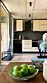 В гостиной полноценная кухня, обеденная зона, а также раскладной диван со спальным местом 160х200, телевизор. Шторы блэкаут на всех окнах позволят вам прекрасно выспаться в любое время дня и ночи. Дополнительные розетки расположены на крытой террасе, чтобы можно было работать на свежем воздухе.