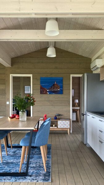 Комфортное размещение от 1 до 4 человек. Прибрежная лесная зона. Удобные кровати с ортопедическими матрасами. Собственная терраса с обеденной зоной. Мини-кухня с холодильником, плитой, чайником и посудой. Возможность работать на природе с видом на море.