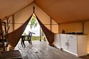 Сафари-тент с видом на море и просторной террасой в кемпинге «Морская гавань»