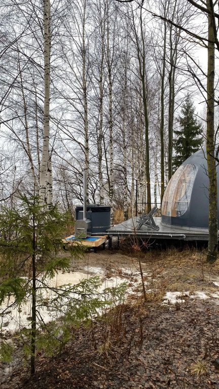 Сфера VIP ORTO с купелью и камином с видом на реку в глэмпинге «На мысу»