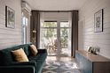 Двуспальная кровать 160х200 с ортопедическими матрасами, а также раскладной диван в скандинавском стиле со спальным местом 140х200. Шторы блэкаут на всех окнах позволят вам прекрасно выспаться в любое время дня и ночи. Около каждого спального места — розетки и USB входы для гаджетов.