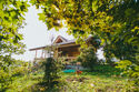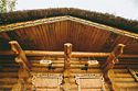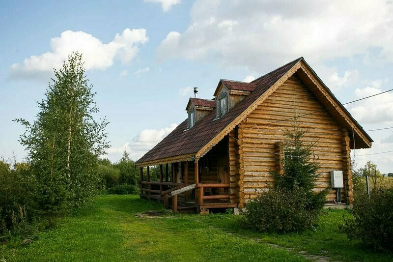 Отдельные двухэтажные коттеджи построенные из деревянных срубов ручной рубки с большой верандой, балконами, резными наличниками, крытые соломой.