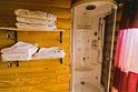 На втором этаже коттеджа: две спальни с двуспальными кроватями и выходом на балкон, санузел. Постельное белье, халаты для сауны и комплекты полотенец - льняное.