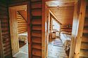Коттедж "Дом охотника" базы отдыха разделен на четыре блока-номера с отдельным входом, каждый из которых двухуровневый и двухместный, идеально может подойти для отдыха парой, а также для отдыха с ребенком, в номере есть возможность размещения детской кроватки, а также дополнительного места для взрослого.