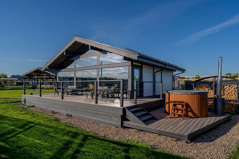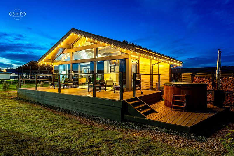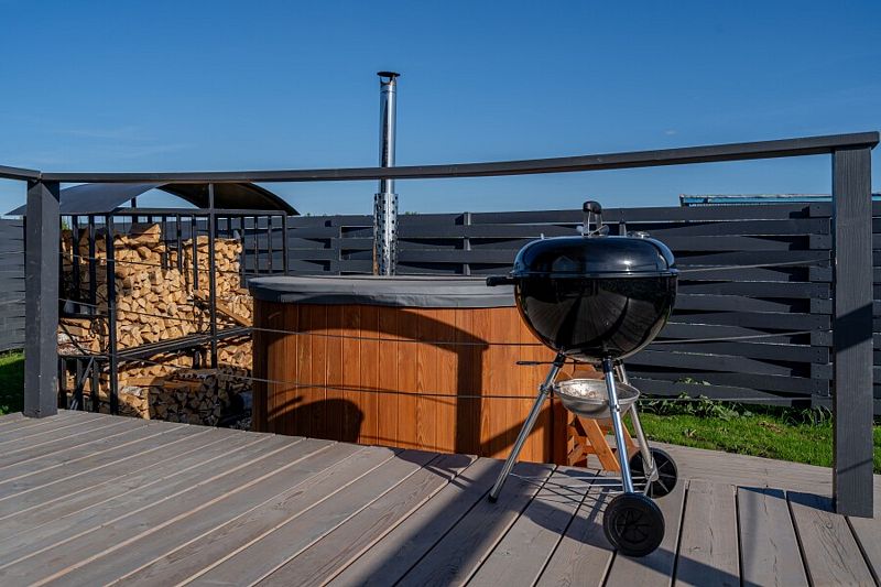 На территории загородного клуба Вы можете расслабиться в купели на дровяной печи с подсветкой, приготовить блюдо в специальной зоне барбекю с мангалом, прогуляться по живописным окрестностям и покататься на сап-бордах. В озере можно искупаться или заняться рыбалкой. Зимой Вам откроются снежные пейзажи и возможность покататься на ватрушках и санках.