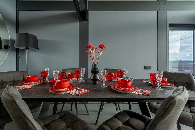 Дом в рубиновых тонах с панорамным остеклением и видом на Плещеево озеро.
