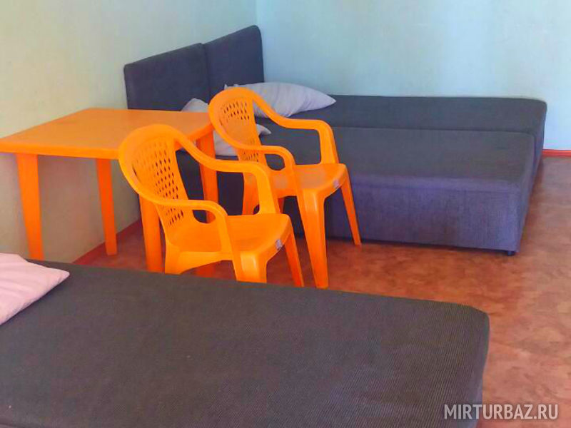 В номере: тахта, стол, стулья.