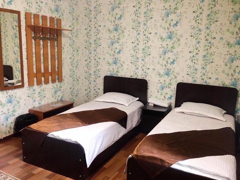 В номере: две односпальные кровати, фен, чайник, холодильник, телевизор, общие удобства.