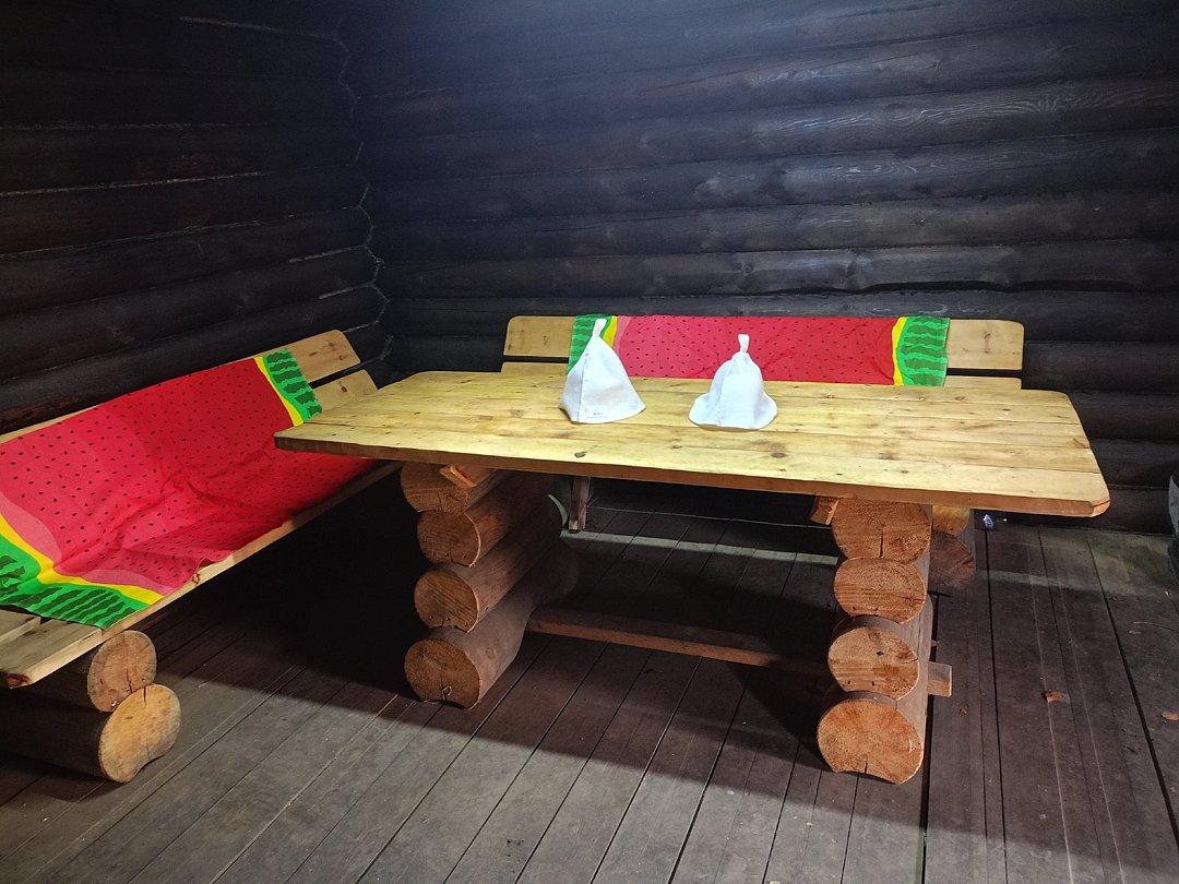 Пятиместная комната № 5 с раздельными кроватями, площадью 36 кв. м, с печью-камином, интернетом и спутниковым ТВ. Данная комната в одном блоке с общественным пространством (юртой, площадью более 200 кв. м. и кухней, оборудованной холодильниками и газовыми плитами.