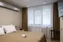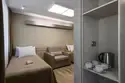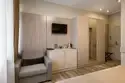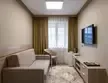 В номере: одна двухспальная кровать. Прикроватные тумбочки, холодильник, большой диван, уютное кресло. Для ваших вещей – вместительный шкаф и тумба. Душевая и туалетная комната.