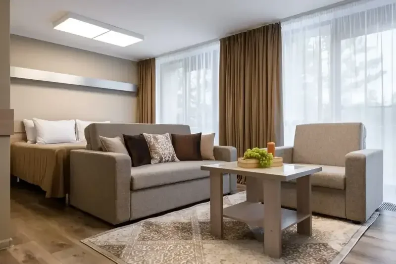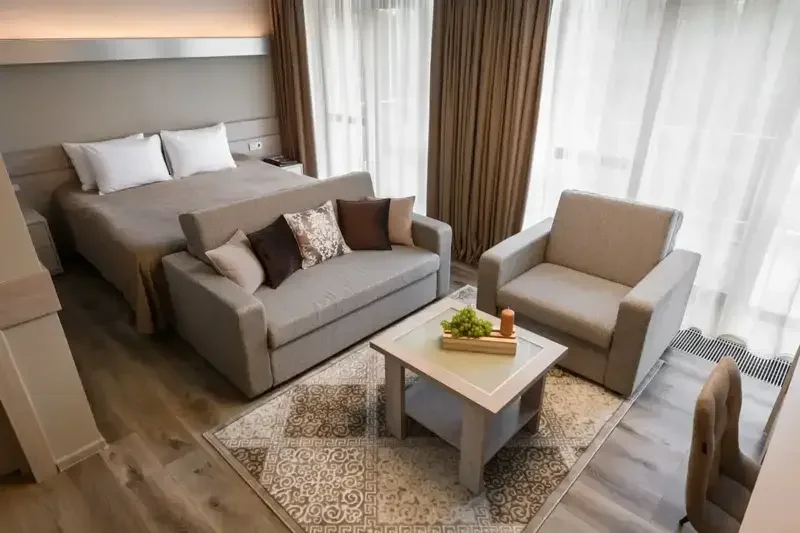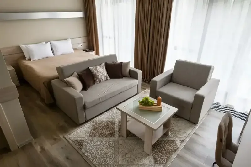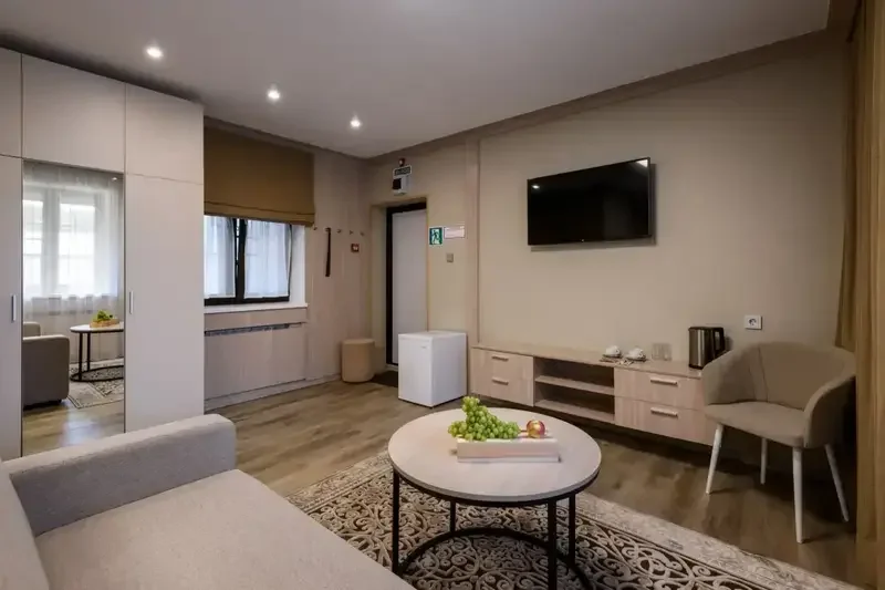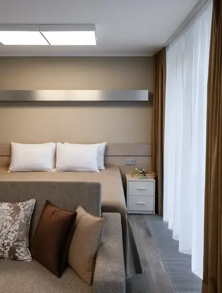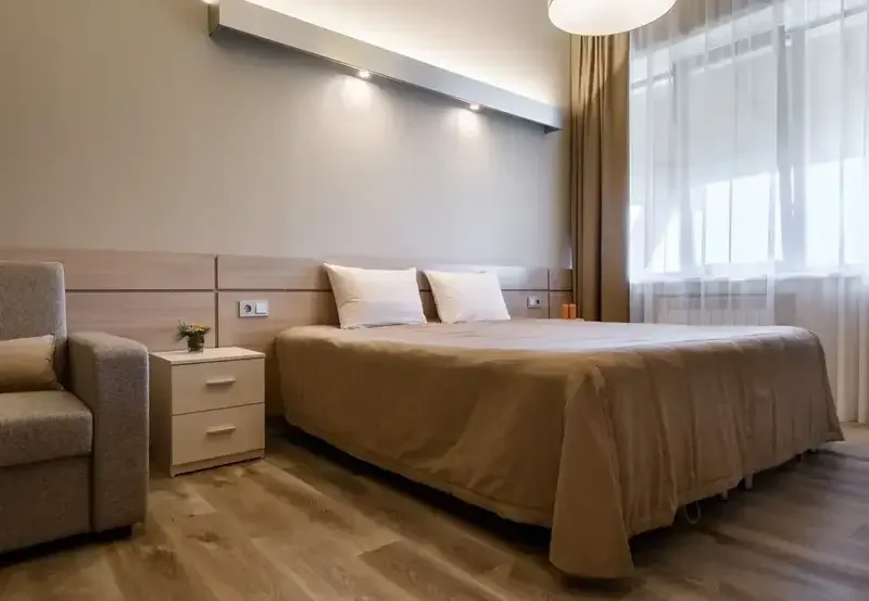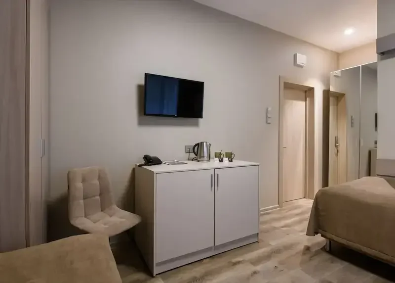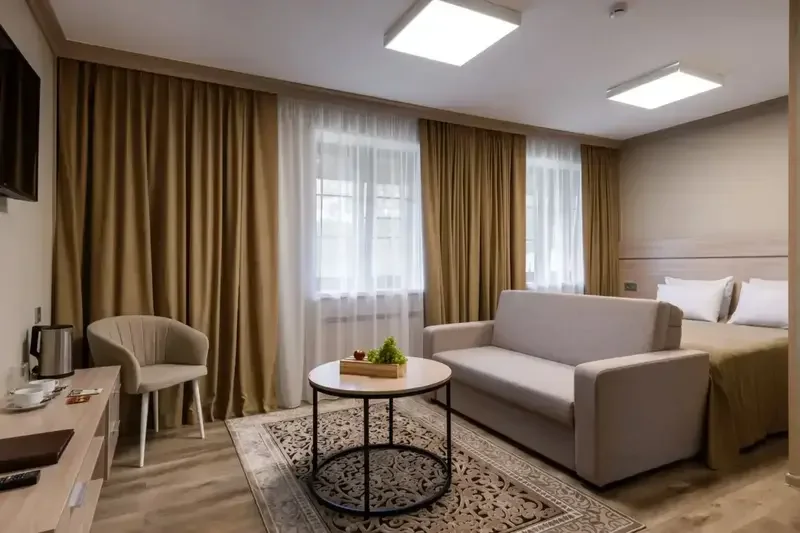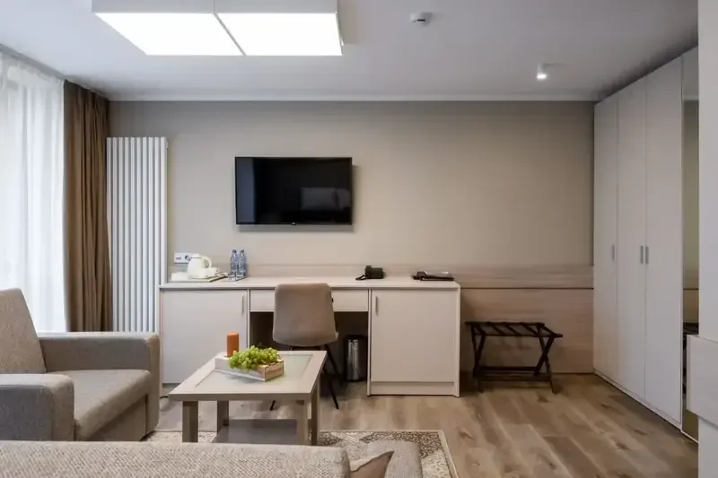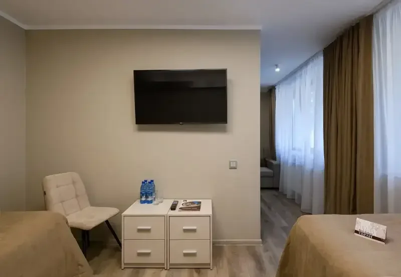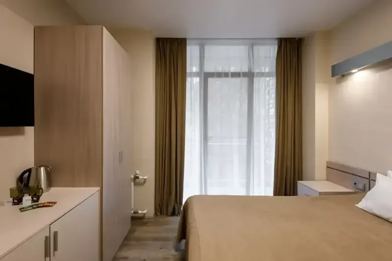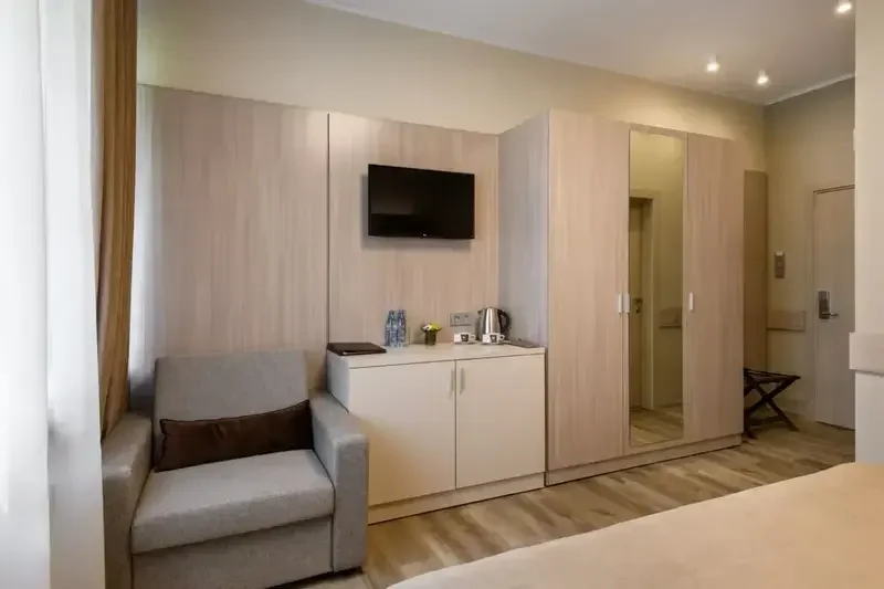 Отделка номера выполнена в современном стиле, в светлых успокаивающих тонах – лучшее решение для качественного отдыха наших гостей.