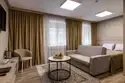 В номере: одна двухспальная кровать. Прикроватные тумбочки, большой диван, уютное кресло. Для ваших вещей – вместительный шкаф и тумба. Душевая и туалетная комната.