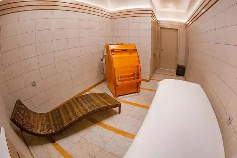 Также отдыхающих ждут в спа-комплексе, в котором есть салон спелеотерапии, кедровая бочка, водная кушетка, гидромассажные ванны, душ Виши. Доступны косметические услуги: пилинги, обертывания, мезотерапия.