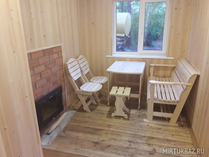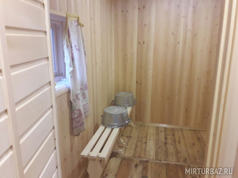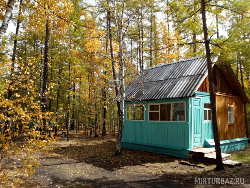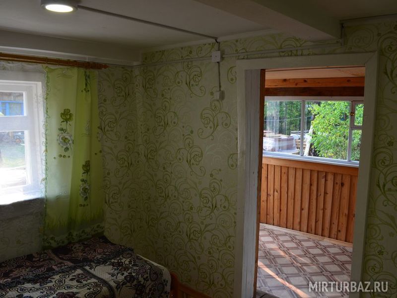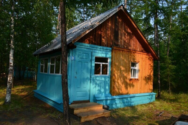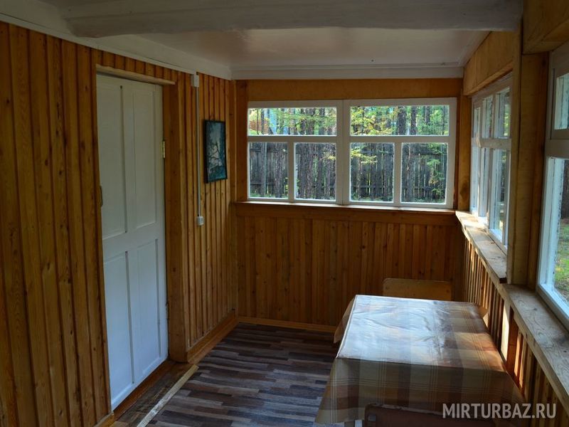 Терраса, спальня с односпальными кроватями. На территории: летний душ, туалеты, умывальники. Постельное белье включено в стоимость.Уютный бревенчатый домик.Днем здесь прохладно а ночью тепло.На базе находится пять таких домиков.Цена указанна за сутки проживания за одно место.