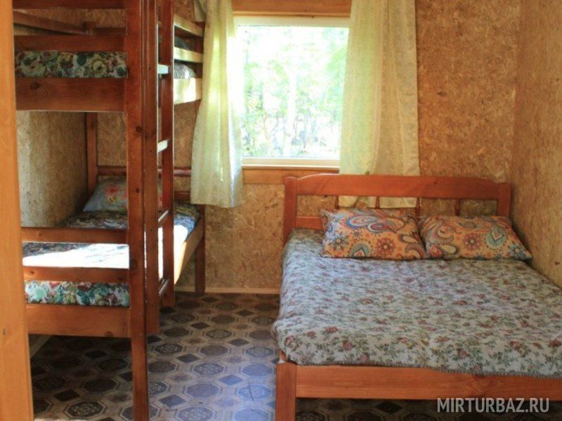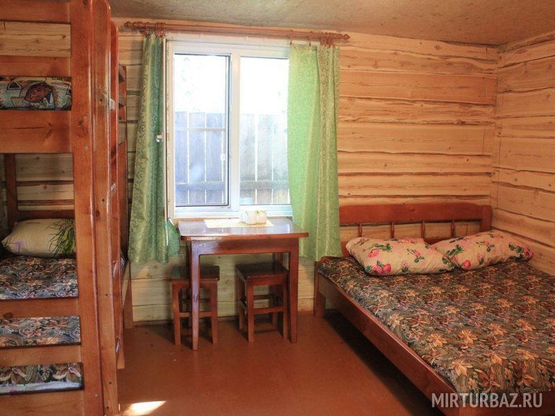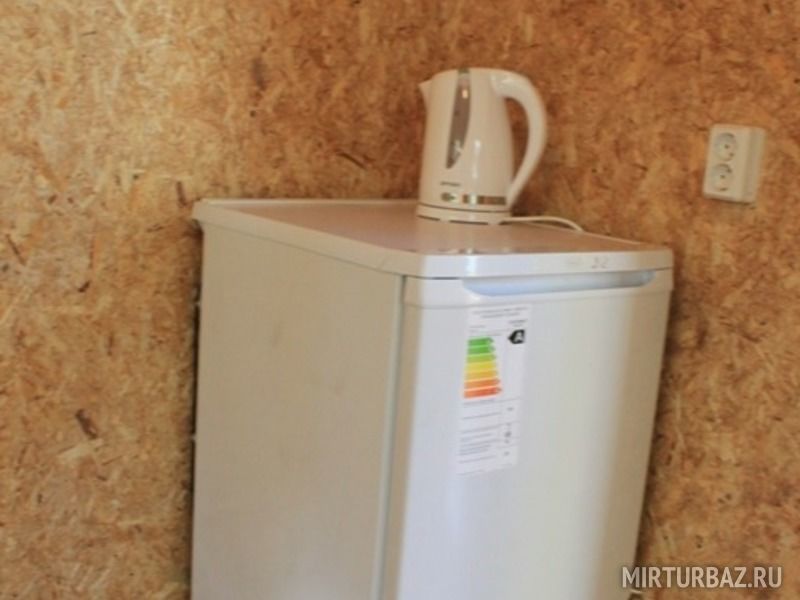 В доме: двухъярусная и двухспальная кровати, стол, стулья, чайник, холодильник, электрообогреватель.