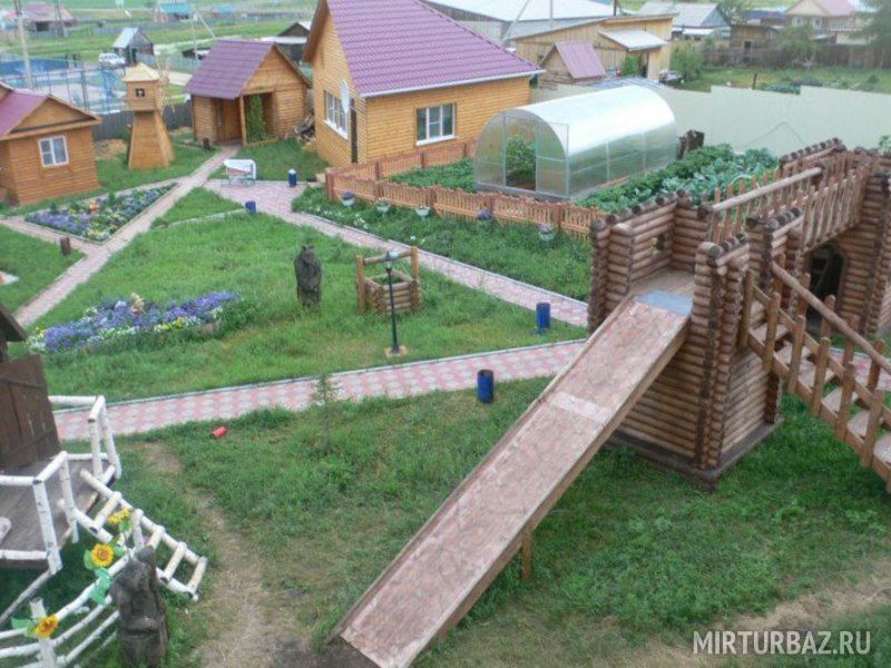 На территории имеются: 7 отдельных домика на двух человек, состоящие из одной комнаты и кухни, 1 домик на 4 человек, состоящий из двух спален и кухни, 1 двухэтажный дом, состоящий из трех комнат и кухни на 8 человек, два дома состоящие из двух комнат и кухни каждый, объединенные одной трассой на 4 человека каждый. Дома полностью оборудованы для удобства и комфортного отдыха.
