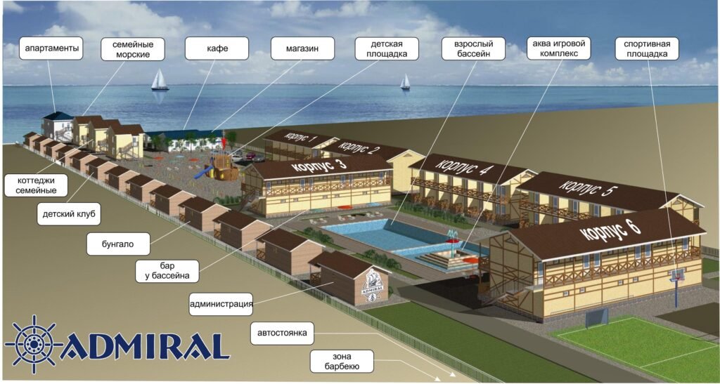 Путешествие с семьейЛюбим Адмирал!Сегодня только вернулись с отдыха.В этом году в Адмирале отдыхали уже 3й раз.Очень нравится турбаза,жили в 4м корпусе прямо напротив нового,современного бассейна.Это кайф,есть медузы,нет медуз-шикарный бассеин рулит(огромный,подогрев,детская зона с ещё более тёплой водой и грибочком-водопадом,три вида гидромассажа,лежаки,музыка,бар,музыка,аквааэробика).Дети только проснулись и сразу же в бассеин.На территории шикарная площадка в виде огромного корабля,качелей и песочниц для самых маленьких.Анимация на высоте-детей вообще не видели)))В номере есть все необходимое,что для меня было очень важно-веник,совок,тазик,ведро и швабра!!!,набор пакетов для мусора,нет зависимости от работников,сам поддерживаешь чистоту.Продуманно все-штопор,посуда для фруктов,рюмки,чашки ,стаканы и т.д.Если что то вышло из строя(у нас скрипела кровать)администратор устраняет моментально.Администраторы-супер,не хватает вам стула на террасе-вот вам,не успеваете веселиться,без проблем))Если любите спорт,отдельная площадка с футбольным воротами,турниками,лестницами и т.д.Зона с мангалами на удалении,никому не мешает запах дыма и шум весёлых отдыхающих.На территории шикарное кафе,есть блюда для детей.Пицца-бомба,мясной пирог,ели два дня,с соседнего Эгоиста за пиццей к нам приходили.Каждый день-блюдо дня на обед(что то из печи на дровах-поэлья,борщ,жаркое и т.д)Официанты умнички,вежливые,ненавязчивые.Мы были в июне,приехали ещё в августе,так официант нас запомнил и все наши предпочтения по кухне тоже)Пляж шикарный,убирают каждый день.Навесов хватает всем,лежаки 50грн,хочешь бери,хочешь на песочке лежи.