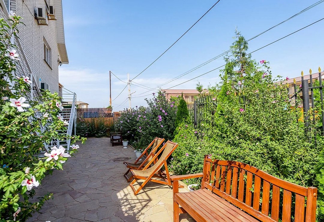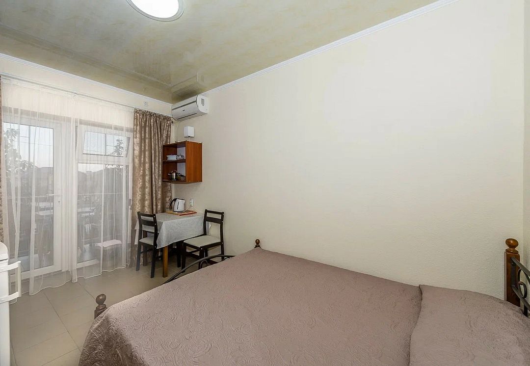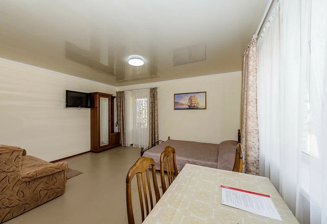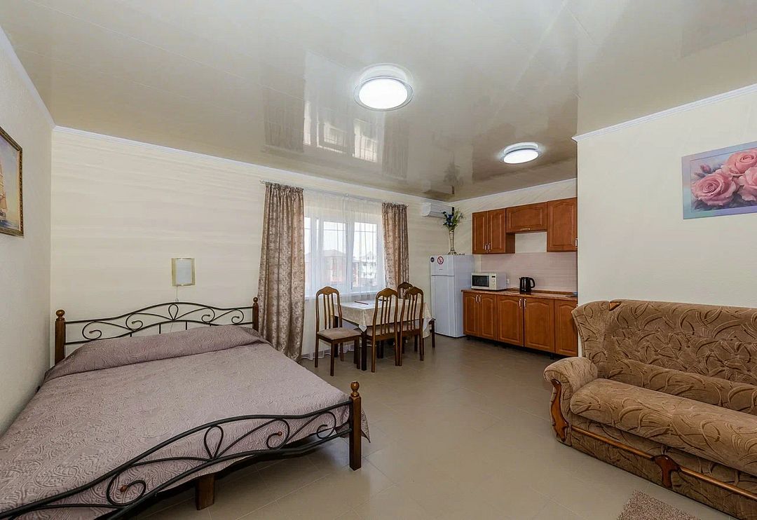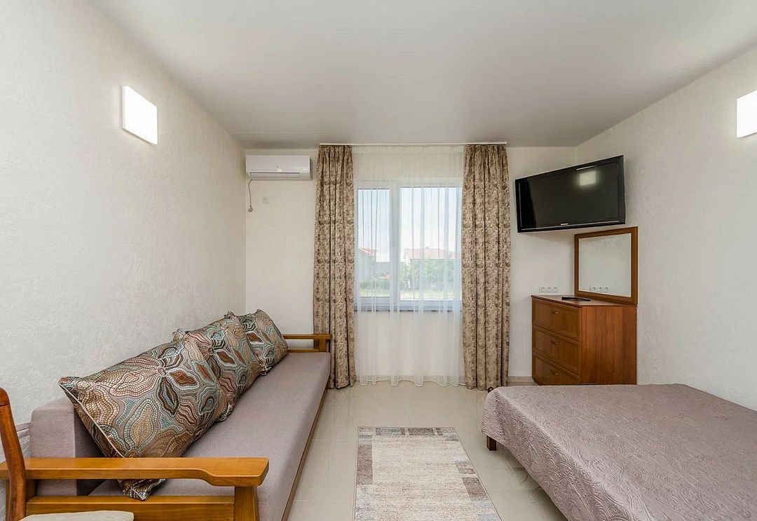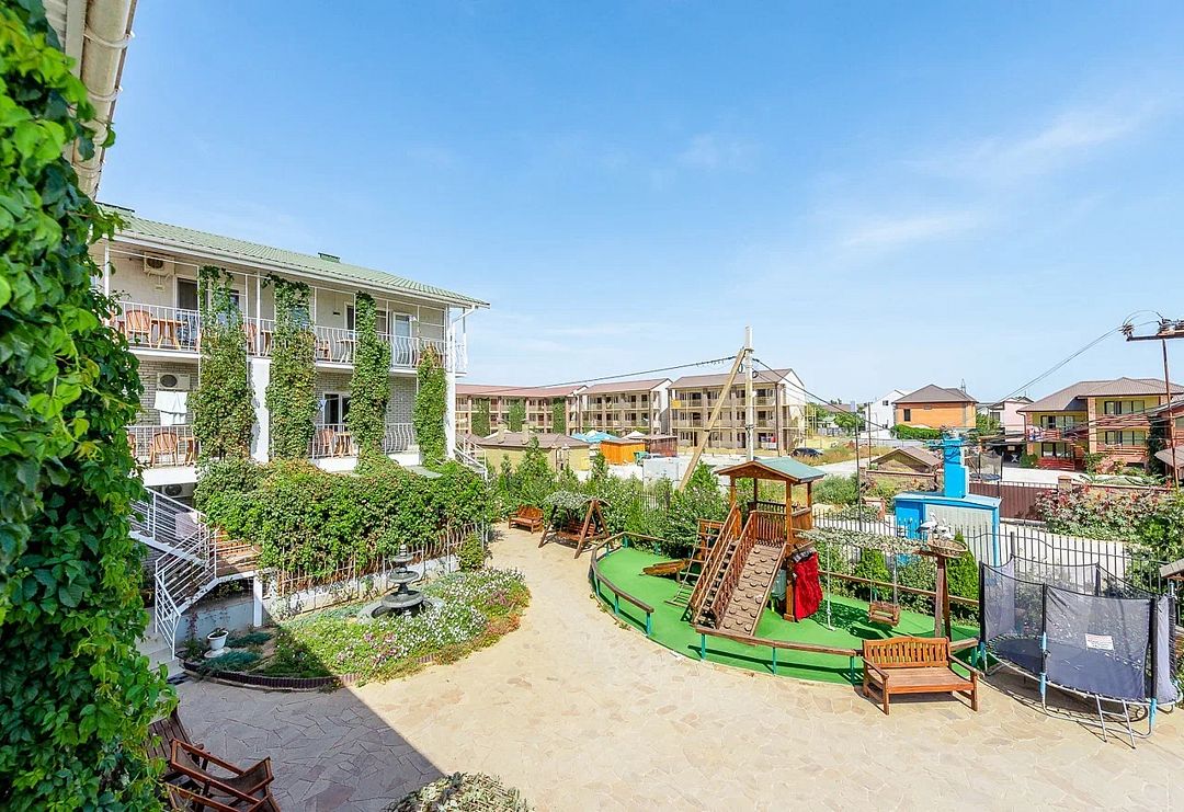 В комфортных номерах базы отдыха установлены удобные кровати, холодильник, кондиционер, собственный санузел с душем. На свежем воздухе обустроена мангальная зона. Питание отдыхающих организовано в столовой. Также работает кафе. Для любителей водных развлечений на территории базы обустроено 2 бассейна – для детей и взрослых. Маленькие постояльцы по достоинству оценят наличие большой игровой площадки. Вся территория базы находится под круглосуточной охраной. Расстояние до пляжа Азовского моря составляет 2 километра.