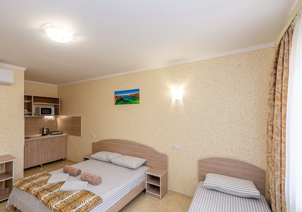 Для проживания гостей предусмотрены просторные и комфортные номера, размещенные в 4 трехэтажных корпусах. Каждый номер оборудован кондиционером, холодильником, спутниковым телевидением, собственной ванной комнатой, а горячая и холодная вода подаётся круглосуточно.